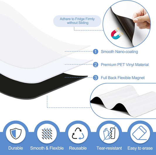 2 PCS Magnetic Dry Erase Whiteboard for Fridge, 14"X11" Reuasble & Erasable White Board Sheet for Refrigerator, Freezer - Smooth & Flexible Magnet Blank Notepad for Home, Kitchen Organizer and Planner