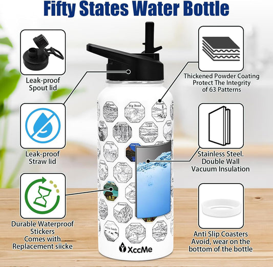 National Parks Water Bottle with Stickers,32 Oz Stainless Steel Insulated Water Bottle with Straw,2 Lids,Leak Proof Metal Water Cup for Hiking,Travel,Sports,Camping,Wide Mouth BottleVendor:BodPeaceRegular price $59.99 USDRegular priceUnit price / per$80.99 USDSale price $59.99 USDSale