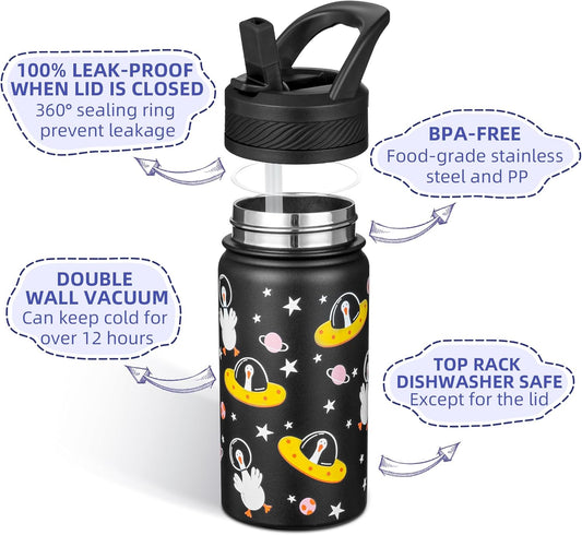 Kids Insulated Stainless Steel Water Bottle 14 Oz Straw Lid
