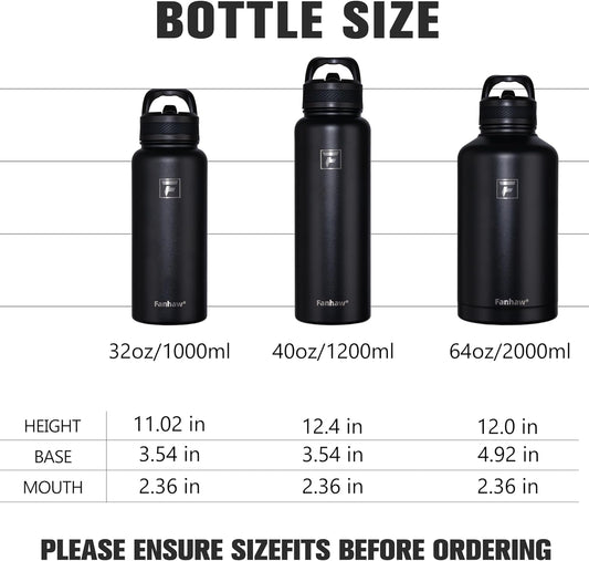 32 Oz Insulated Water Bottle With 3 Lids Stainless Steel