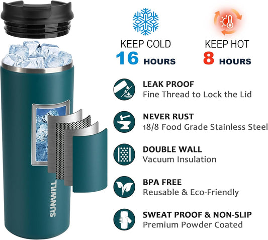 Travel Coffee Mug with Lid, Leak Proof Tumbler Stainless Steel, 16 Oz Insulated Cup for Water, Tea, Ice, Powder Coated Peacock BlueVendor:BodPeaceRegular price $50.99 USDRegular priceUnit price / per$68.99 USDSale price $50.99 USDSold out