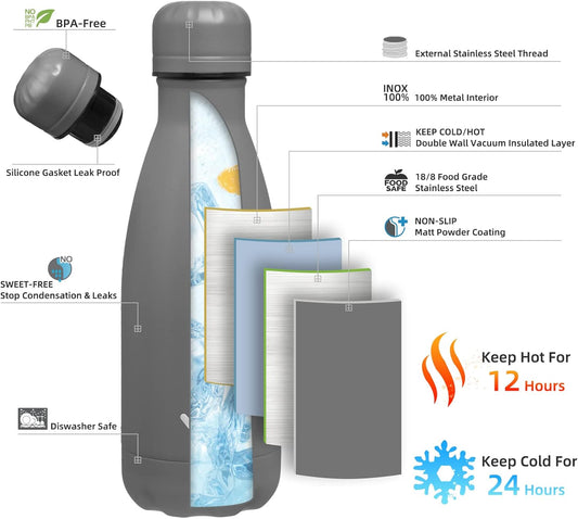 Insulated Water Bottles,12 Oz Double Wall Stainless Steel Vacumm Metal Flask for Sports Travel,GrayVendor:BodPeaceRegular price $45.99 USDRegular priceUnit price / per$62.99 USDSale price $45.99 USDSale