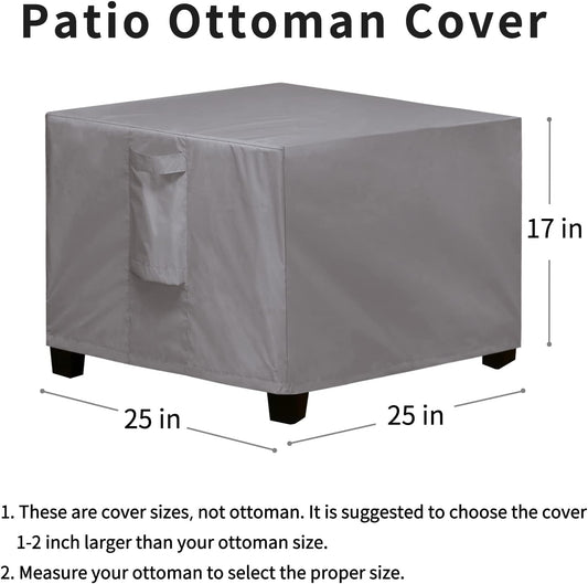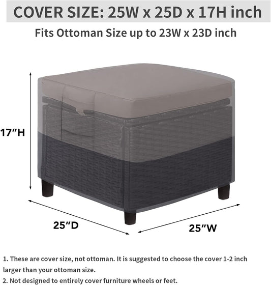 Outdoor Ottoman Cover, Waterproof Patio Ottoman Cover, Heavy Duty Outdoor Furniture Cover with Padded Handles (1 Pack-25"X25"X17", Gray/Dark Gray)