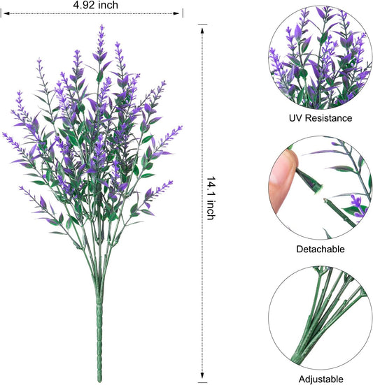 Artificial Plants Outdoor Flowers Spring Decoration, 10 Bundles Fake Plastic Greenery UV Resistant Realistic Faux Lavender Look Real for Home Porch Planter Window Patio (Purple)