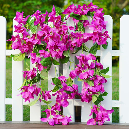 2PCS Bougainvillea Artificial Hanging Flowers Plants for Outdoors outside Fall Decoration, Faux Silk Flowers Fake Vines UV Resistant Look Real Realistic for Front Door Porch Planter Balcony, Fuchsia