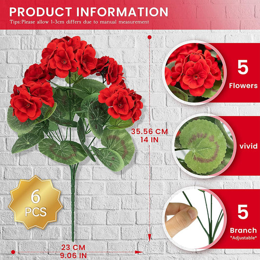 6 PCS 14" Artificial Geranium Flowers for Outdoors, Realistic Artificial Flowers UV Resistant Silk Faux Geraniums for Garden Planter Windowsills Patios Wedding Outdoor Home Decor, RedVendor:BodPeaceRegular price $51.99 USDRegular priceUnit price / per$70.99 USDSale price $51.99 USDSale