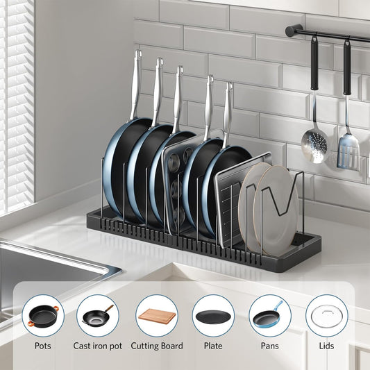 Expandable Pans and Pots Lid Organizer Rack for Cabinet - Rubber-Dipped Pan Organizer Rack for Kitchen Cabinet Organizers and Storage with 10 Adjustable Dividers and Anti-Scratch StripVendor:BodPeaceRegular price $41.99 USDRegular priceUnit price / per$0.00 USDSale price $41.99 USDSold out