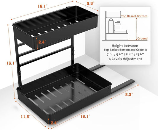 Height Adjustable 2 Tier Metal Pull Out Slide Shelf Organizer for under Sink Cabinets in Kitchen, Bathroom, with Snap-On Top Tray, 16" Deep (Black, 2 Sets)Vendor:BodPeaceRegular price $111.99 USDRegular priceUnit price / per$0.00 USDSale price $111.99 USD