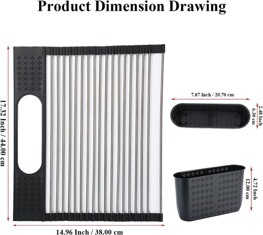 Over-the-Sink Dish Drying Rack, 17.5" x 15" Rollable Stainless Steel with Removable Storage Basket for Kitchen UseVendor:BodPeaceRegular price $51.99 USDRegular priceUnit price / per$70.99 USDSale price $51.99 USDSale
