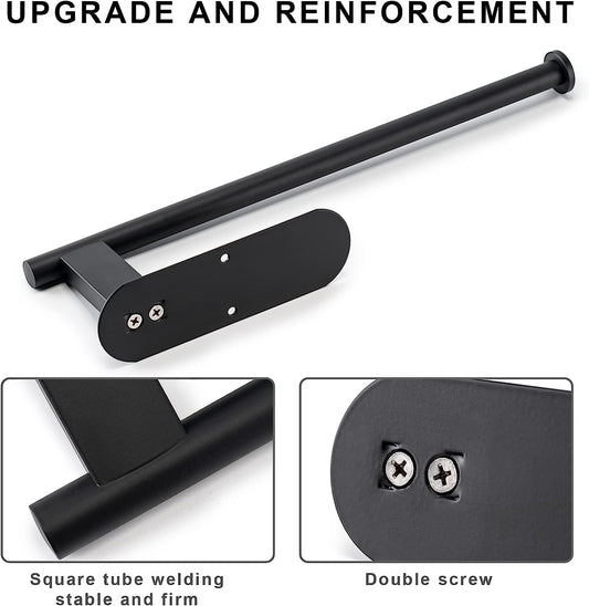SUS304 Stainless Steel Under-Cabinet Paper Towel Holder - Durable, Bend-Resistant Design with Self-Adhesive and Drill Mounting Options (Black)