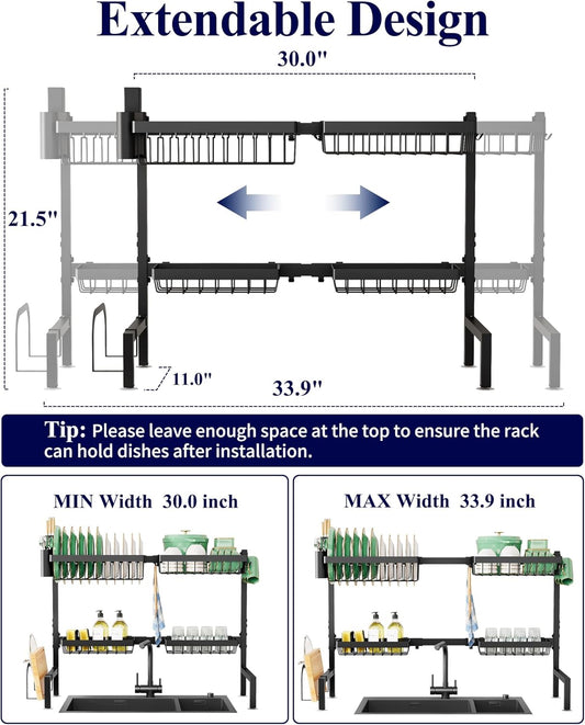 over the Sink Dish Drying Rack - 30.0" to 33.9" X 21.5", Adjustable Sink Drying Rack for Kitchen Sink with Multifunctional Baskets, BlackVendor:BodPeaceRegular price $60.99 USDRegular priceUnit price / per$82.99 USDSale price $60.99 USDSale