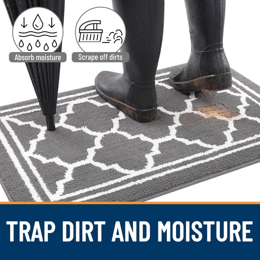 Door Mat Indoor Entrance, Non-Slip Absorbent Doormat for Front Door, Low-Profile Entryway Mat for Muddy Paws, Washable Dirt Trapper Mats (20"X32", Grey)