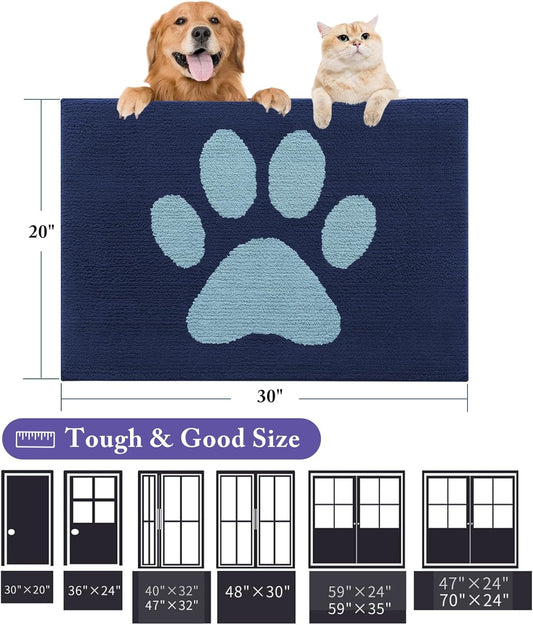 Dog Door Mat for Muddy Paws, Absorbent Dirt Trapper Washable Indoor Doormats, Non Slip Low-Profile Mud Mat for Dogs, Front Entrance Doormat for inside Floor (30X20 Inches, Dark Blue)