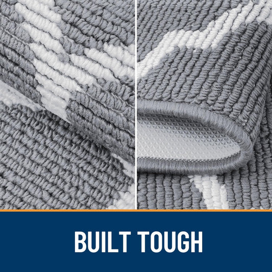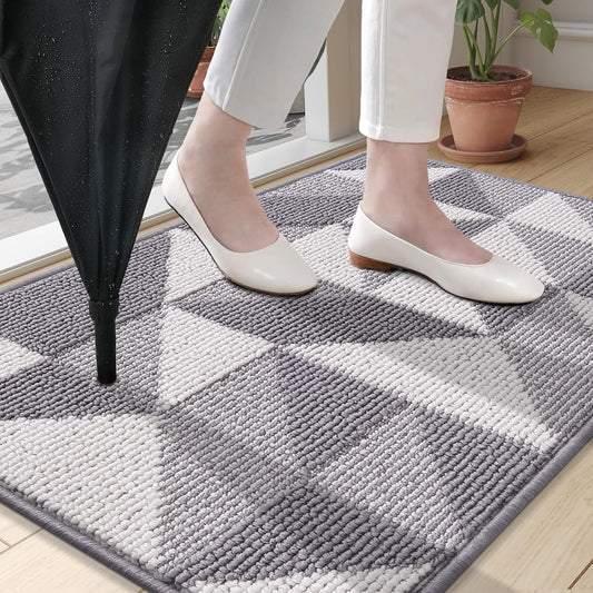 Door Mat Indoor Entrance Washable 32X20, Absorbent Non-Slip Front Back Geometric Doormat, Resist Dirt Entry Carpet, Easy to Clean Sturdy inside Floor Mats for Entryway, Grey