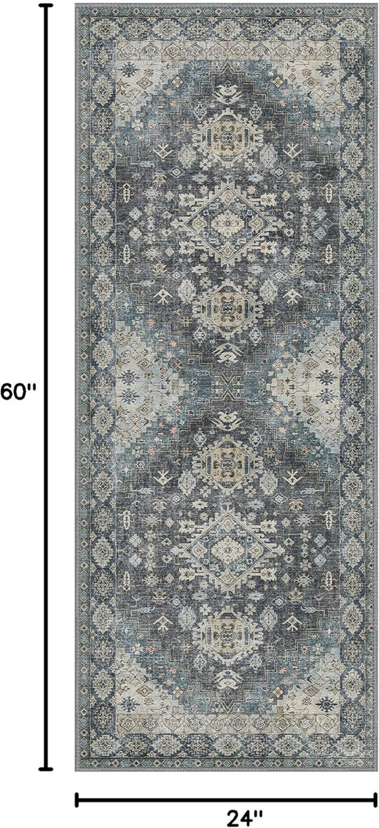Washable 2x5 Runner Rug Hallway Chenille Non Slip Slate Gray