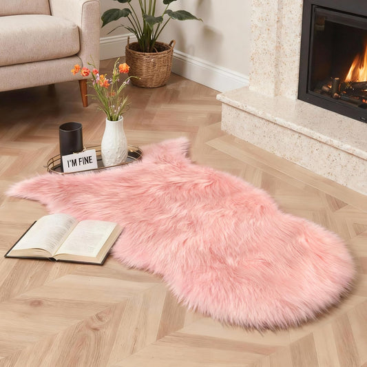 Pink Faux Fur Rug 2x3 High Pile Plush Shaggy Area Rug