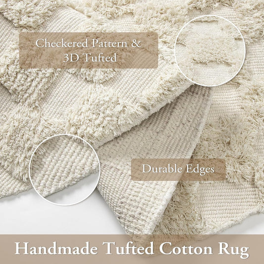 Checkered Boho round Rug 3Ft, Small Beige Circle Bathroom Nursery Rug Cotton Indoor Bath Door Mat with Tufted, Farmhouse Checkerboard Washable Cream Carpet for Dorm Entryway Room DecorVendor:BodPeaceRegular price $76.99 USDRegular priceUnit price / per$103.99 USDSale price $76.99 USDSold out