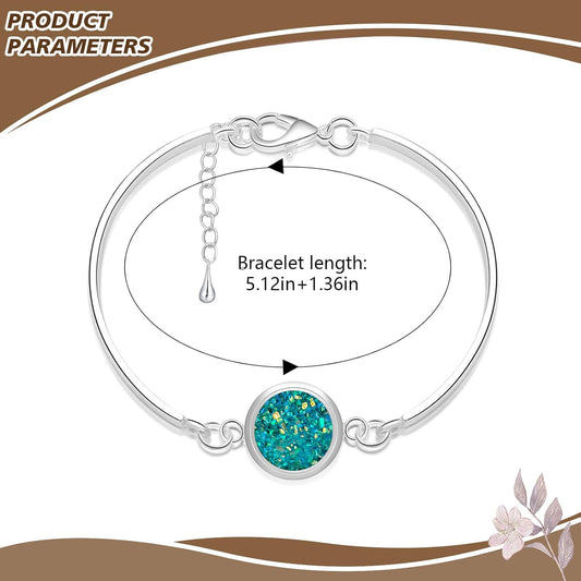 Adjustable Cuff Bangle Bracelet for Women, Fake Druzy Gemstone Link Bracelet Silver Handmade Healing round Bracelets Boho Statement Bracelet Gifts for Her