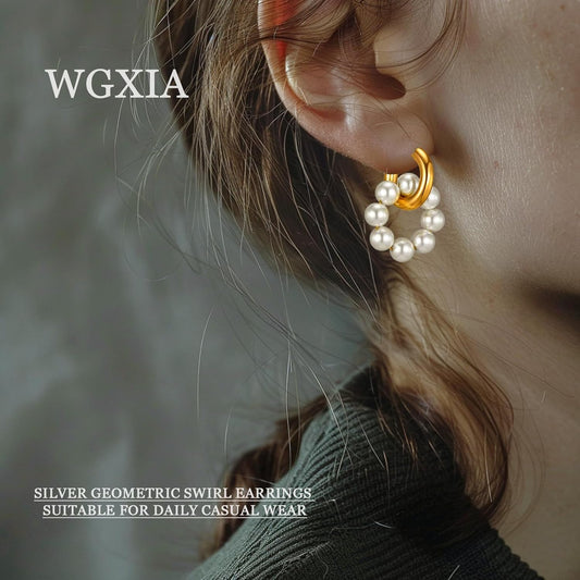 Gold Pearl Huggie Earrings for Women Trendy Pearls Hoop Earrings Hypoallergenic Earrings for Sensitive Ears for Mother Daughter Girlfirend Jewelly Christmas Birthday Present
