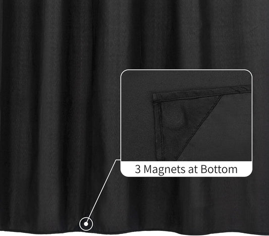 Waterproof Fabric Shower Curtain Soft Hotel Quality - 3 Magnets at Bottom, Premium Black Shower Curtain Liner for Bathroom, Light-Weight Cloth & Washable - 72X72, Black