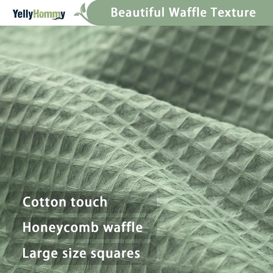 Cotton Touch Shower Curtain Heavy Duty Green Waffle Textured Shower Curtain with Hooks 54 Wx78 L