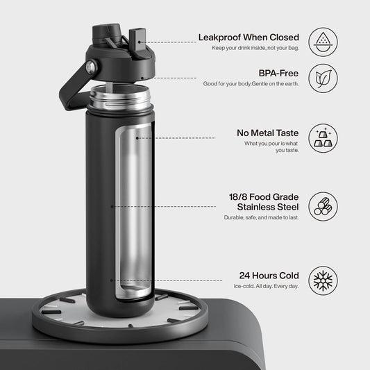 Insulated Water Bottle with Straw Stainless Steel Water Bottle, Leak-Proof, Bpa-Free, Double Wall Vacuum Keeps Cold for 24 Hours for Sports, Travel, School (26 Oz, Black Night)Vendor:BodPeaceRegular price $49.99 USDRegular priceUnit price / per$67.99 USDSale price $49.99 USDSale