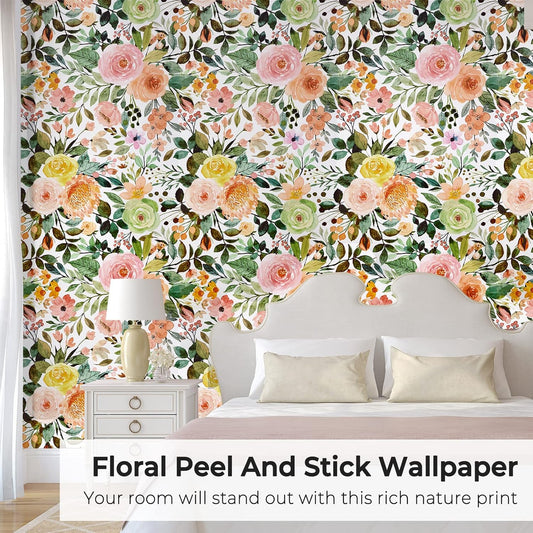Peel And Stick Floral Textured Pink Watercolor Wallpaper