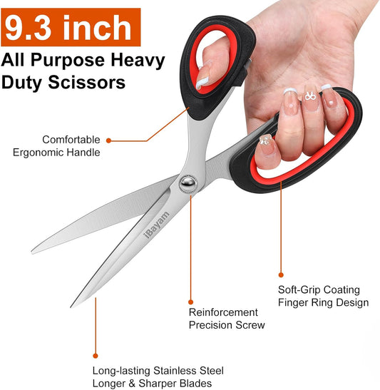 Scissors All Purpose, 9.3 Inch Scissors Heavy Duty Stainless Steel Shears for Home Household Cutting Fabric Leather, Sewing Shears, Paper Box Cutter, Package Opener, Hand Cutting Tools