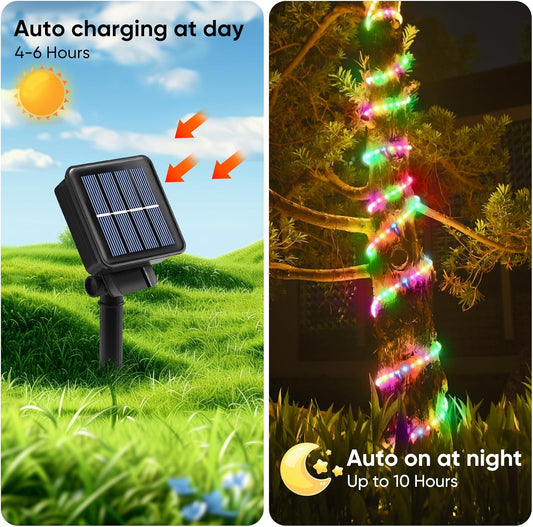 Solar String Lights with PVC Tube, 1 Pack, 33 Ft, 100 LED, Multi Color, 8 Modes, Durability, Waterproof, for Outdoor Use, Ideal for Garden, Patio, Yard, Wedding