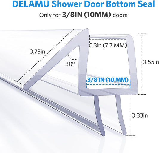Shower Door Bottom Seal, 3Pack Shower Door Sweep Strip, Frameless Glass Doors Seal Strip for 3/8'' (10Mm) Thick Doors, Showers Water Guard & Barrier - Stop Water Leakage, 39.3'' X 0.39''