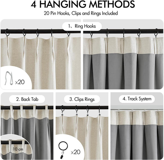 Linen Pinch Pleated 100% Blackout Curtains - 92 Inch Long, Set of 2 Panels, Back Tab Track Cream Darkening Drapes with Hooks for Bedroom and Living RoomVendor:BodPeaceRegular price $115.99 USDRegular priceUnit price / per$156.99 USDSale price $115.99 USDSale