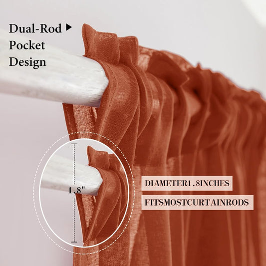 Terracotta Linen Textured Sheer Curtains 2 Panels for Kitchen/Bedroom/Living Room Semi Transparent Voile Drapes Rust Boho Farmhouse Fall Decor Window Panels Rod Pocket, W 54 X L 54 Inches LongVendor:BodPeaceRegular price $48.99 USDRegular priceUnit price / per$0.00 USDSale price $48.99 USD